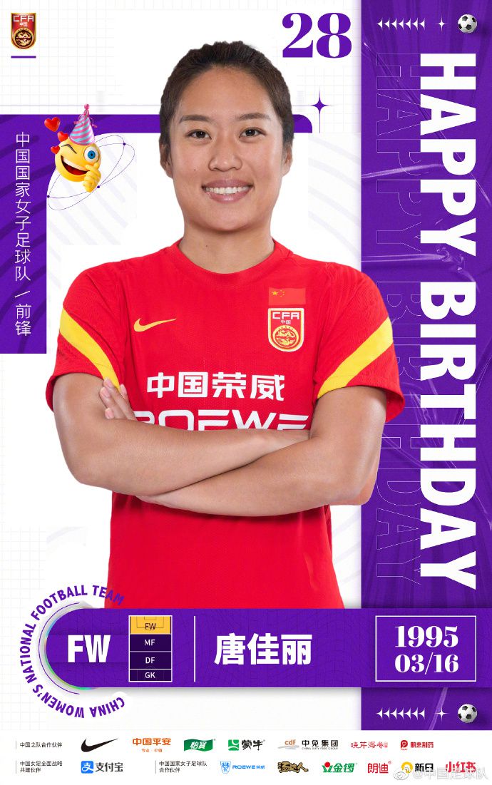 过去一岁,你成为登陆西甲的中国女足球员第一人。新赛季回归了女超联赛,期待你尽快恢复出色竞技状态,为中国女足在今年的各项大赛中攻城拔寨。祝唐佳丽28岁生日快乐!