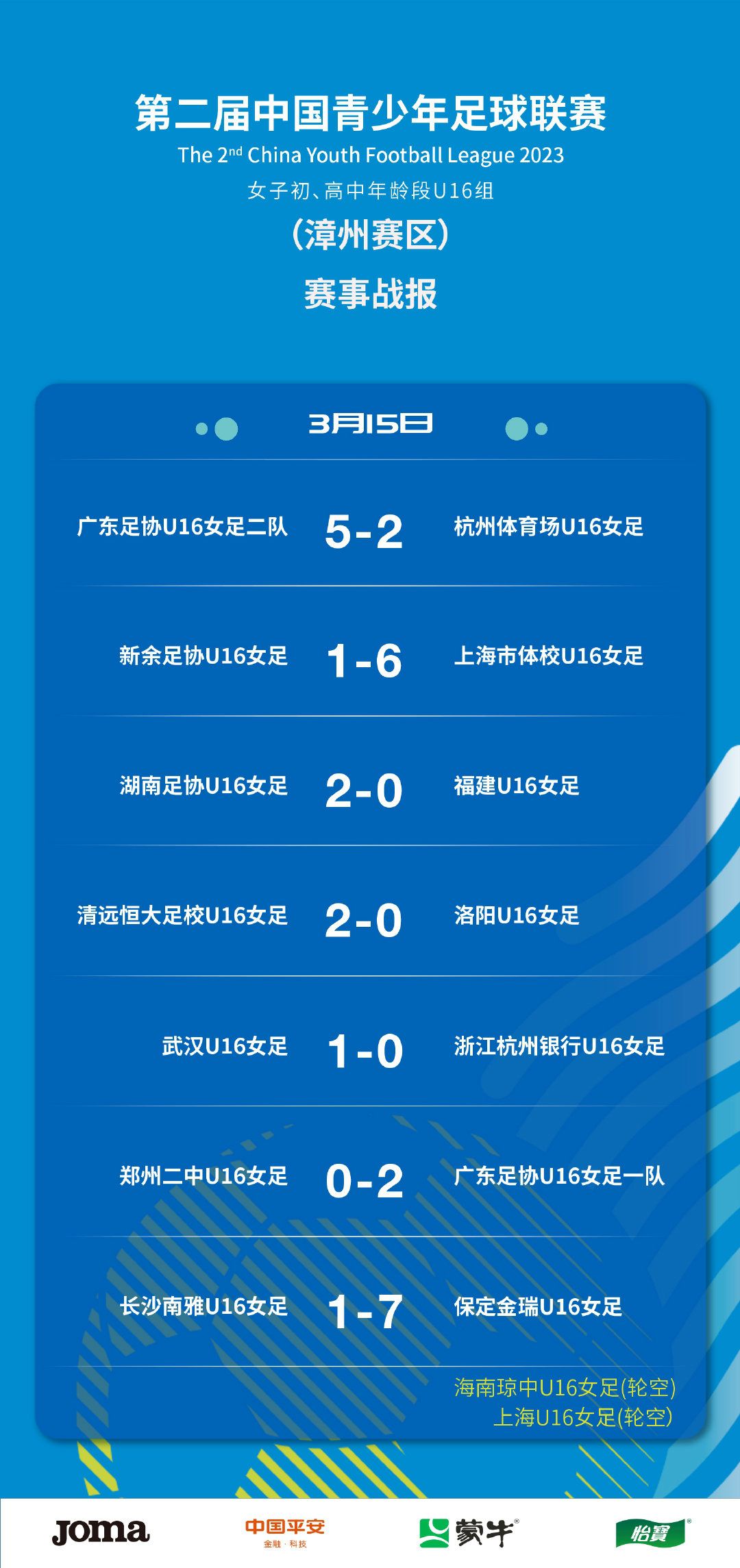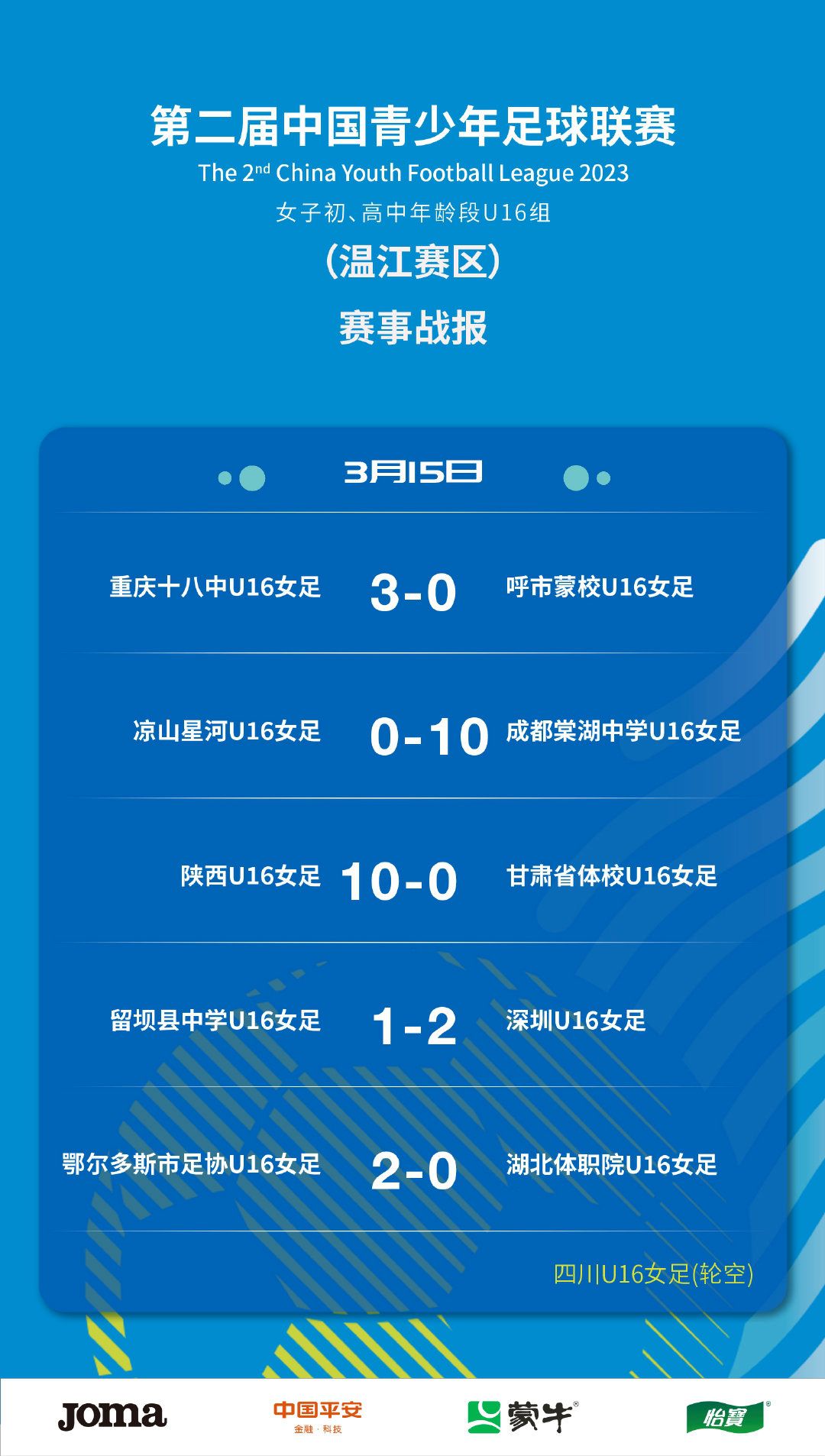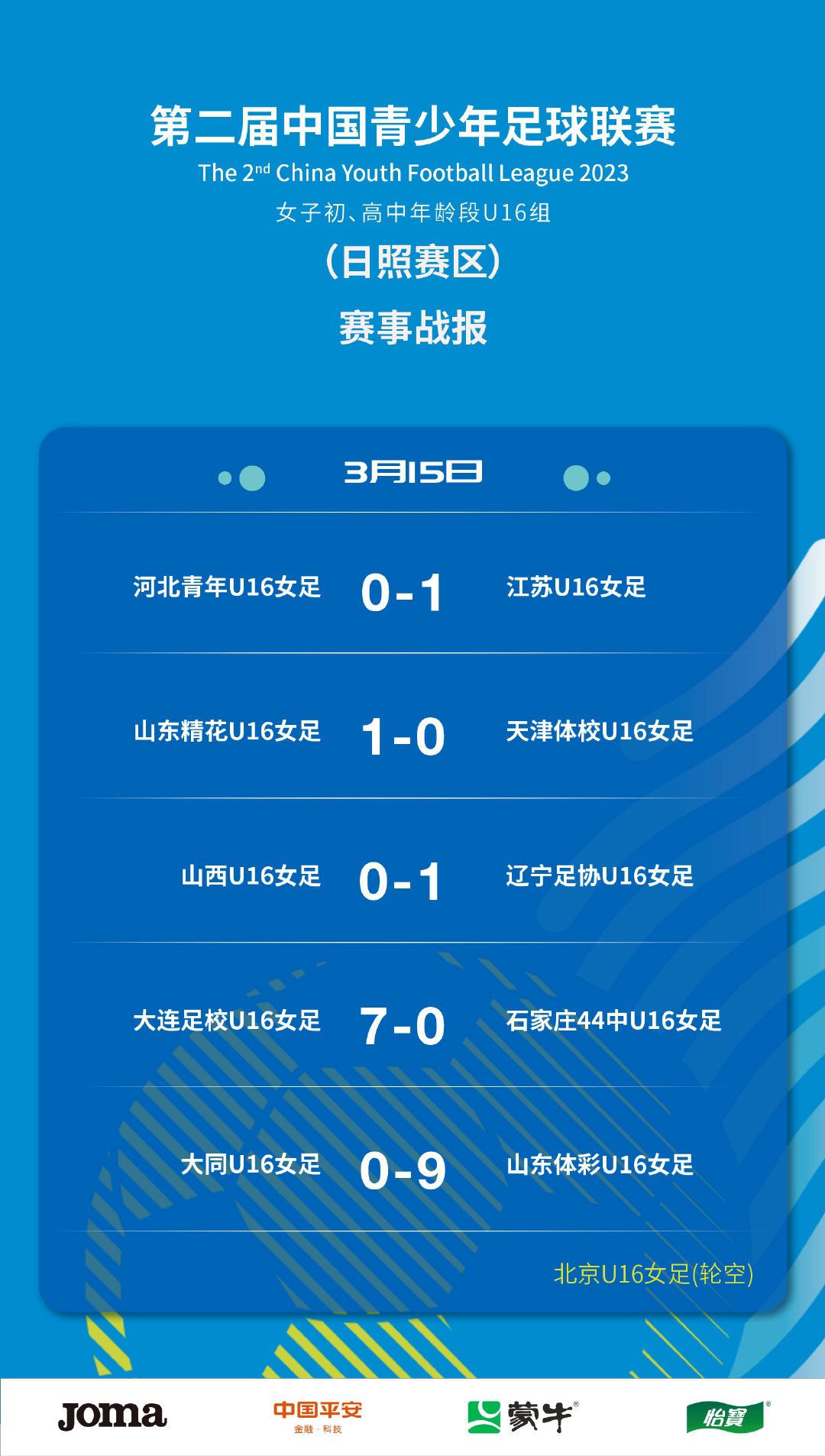 第二届中国青少年足球联赛女子初、高中年龄段U16组第一阶段第一轮战报????