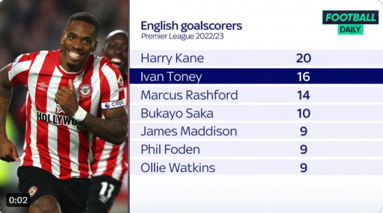 玩球网3月16日讯 Football Daily统计了英格兰球员在本赛季英超比赛中的进球数量,并列出榜单,凯恩以20球居首,伊万-托尼、拉什福德分列二三位。 英格兰本土球员英超射手榜: 凯恩(热刺)——20 伊万-托尼(布伦特福德)——16 拉什福德(曼联)——14 萨卡(阿森纳)——10 麦迪逊(莱斯特城)——9 福登(曼城)——9 沃特金斯(维拉)——9 (木子) |