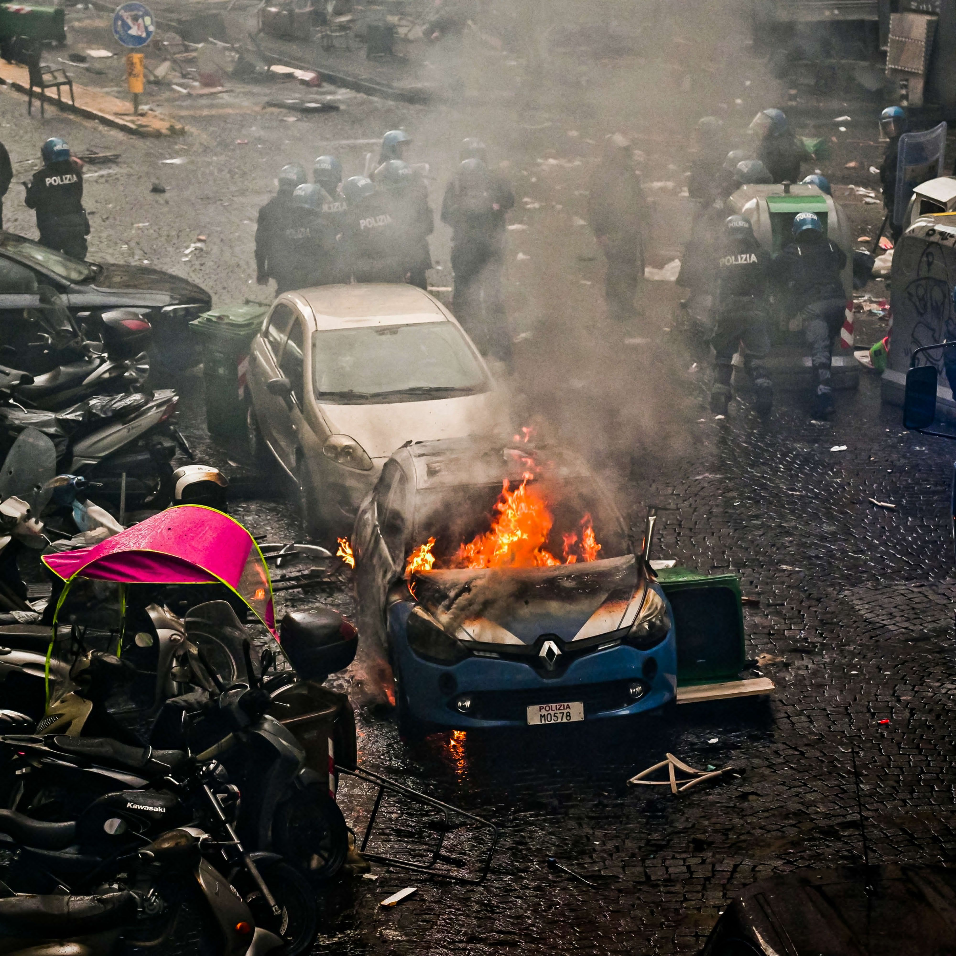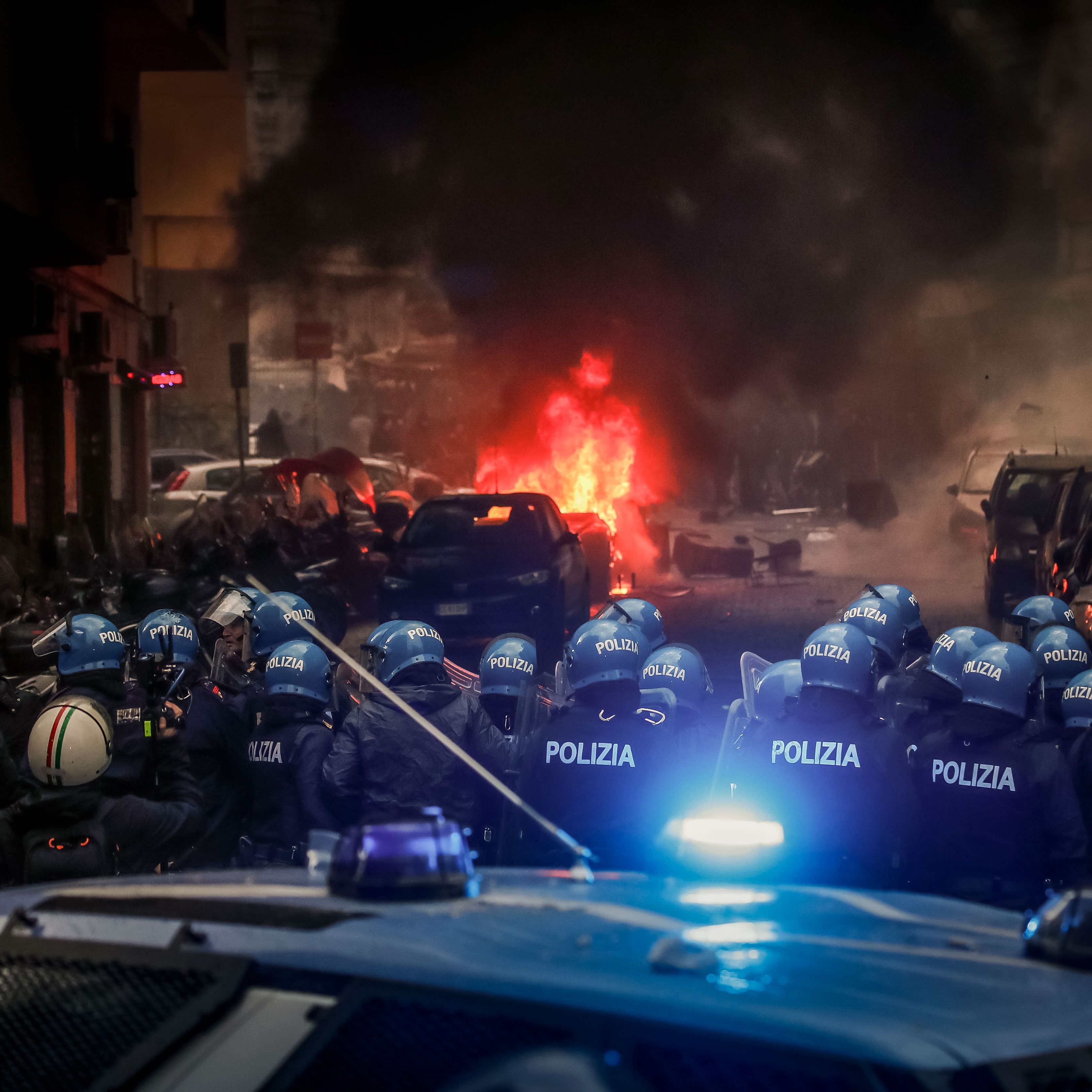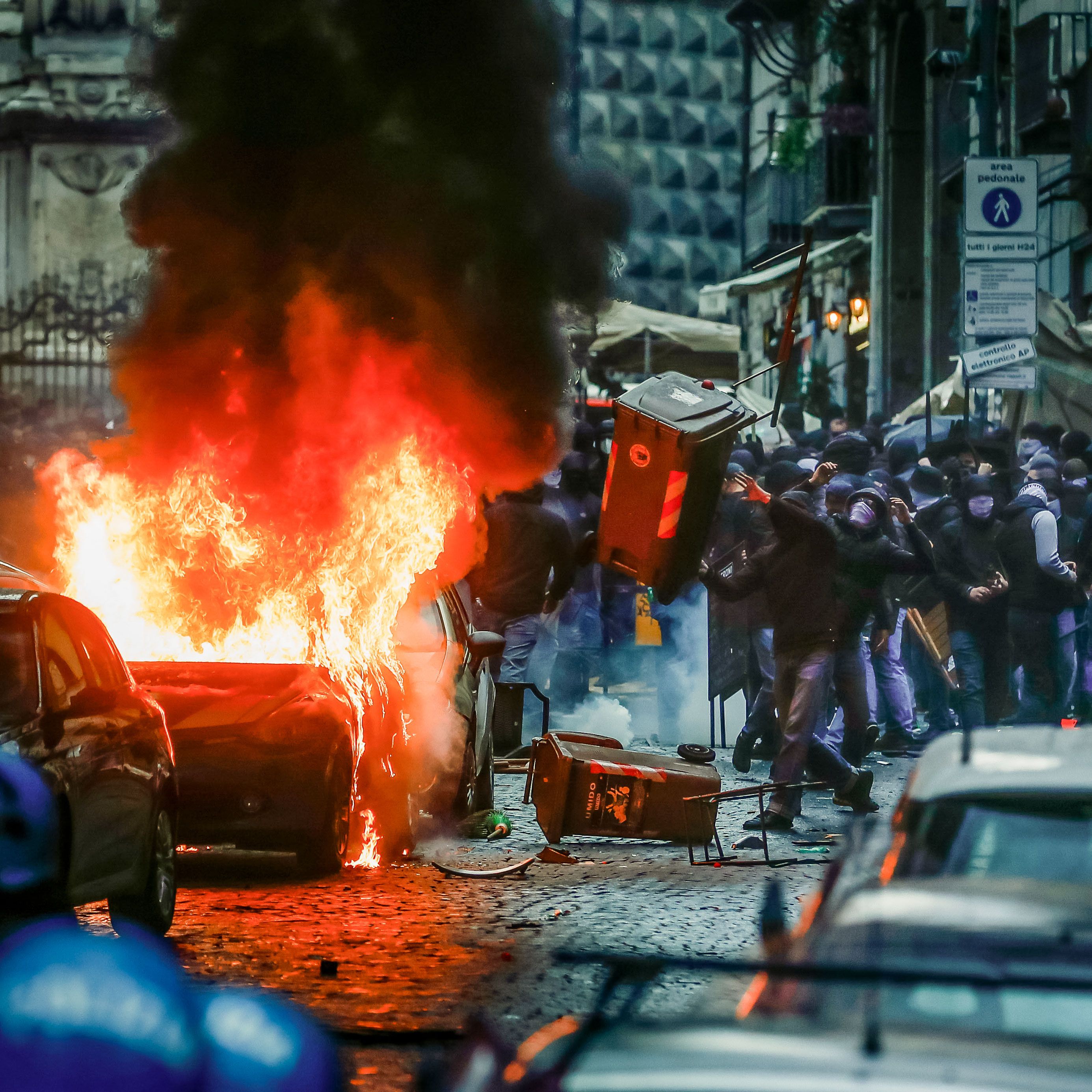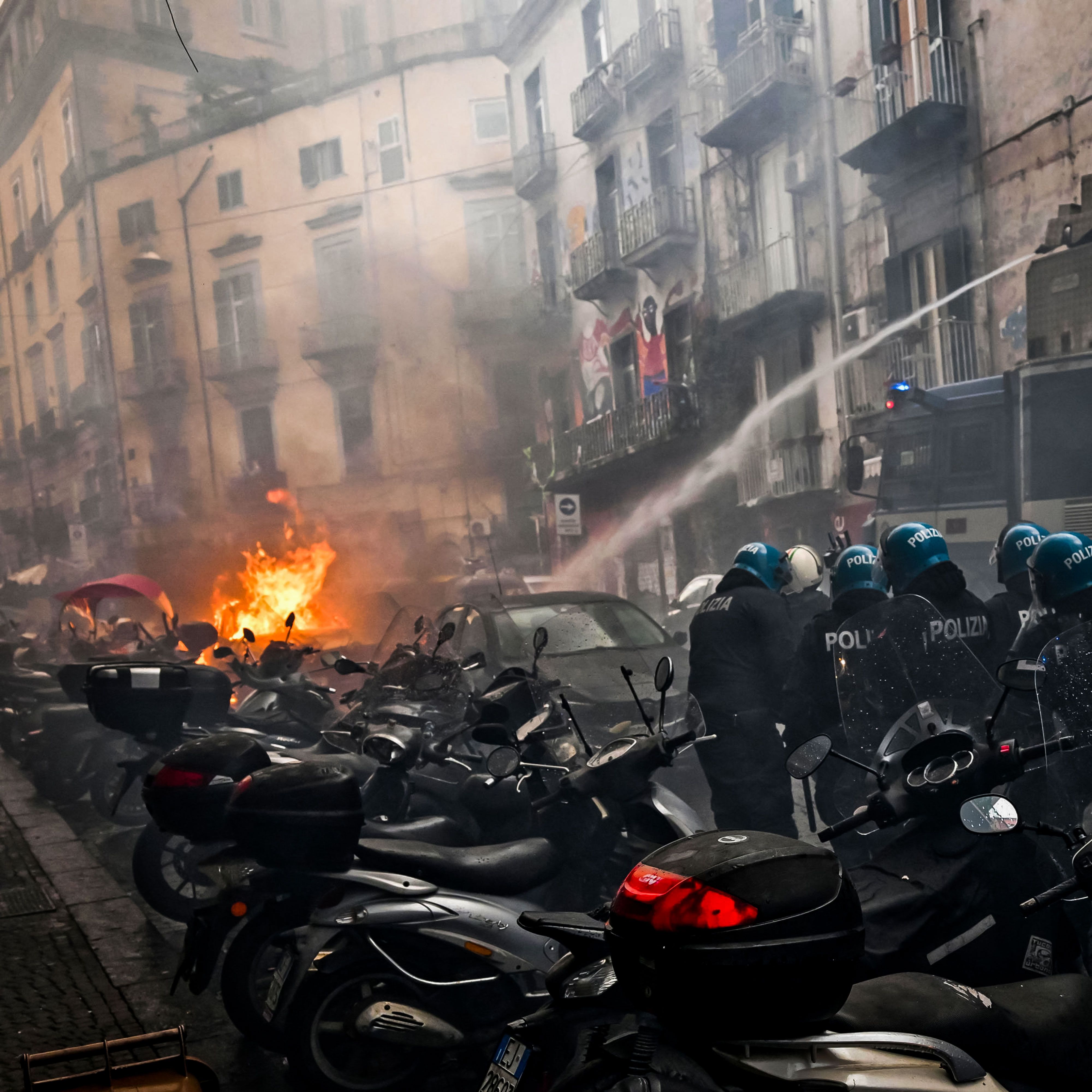 这不是足球????那不勒斯vs法兰克福赛前大规模街头冲突 火光冲天