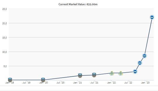 玩球网3月16日讯今日德转更新英超联赛的球员身价。布莱顿的日本边锋三笘薰身价涨到了2200万欧,比上一期的850万欧足足高出了两倍有余。三笘薰身价变化(加盟布莱顿后)↓去年9月:300万欧去年11月: