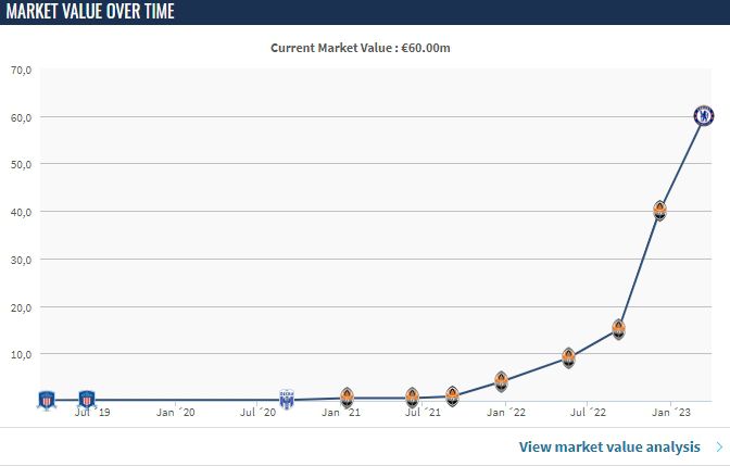 玩球网3月16日讯 德转今日更新英超球员身价,冬窗加盟切尔西的穆德里克身价从4000万欧暴涨至6000万欧。
