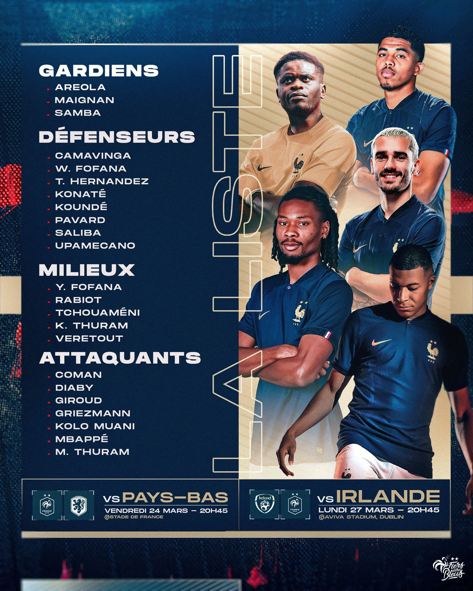 玩球网3月16日讯法国国家队公布新一期国家队名单,姆巴佩&吉鲁领衔名单,卡马文加以左后卫身份入选,萨利巴在列(注:本泽马、洛里、瓦拉内已经个人宣布从法国国家队退役)。具体名单门将:阿雷奥拉(西汉姆联)