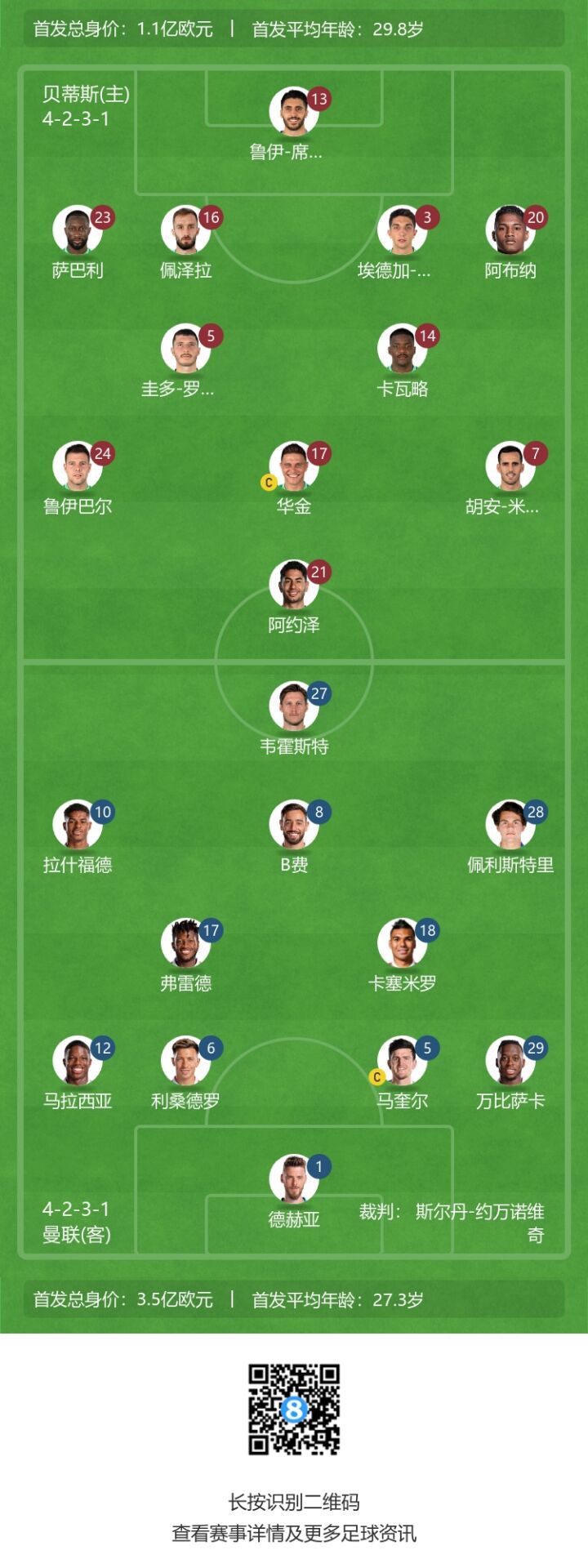 玩球网3月17日讯欧联1/8决赛次回合,曼联客场对阵贝蒂斯,首回合曼联4-1取胜。赛前官方公布首发名单。曼联方面,佩利斯特里红魔生涯首次先发,队长马奎尔出战,安东尼因病缺席。曼联首发:1-德赫亚、29