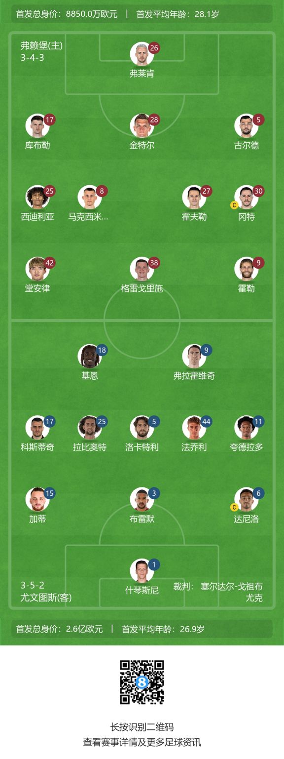 玩球网3月17日讯欧联杯1/8决赛次回合,尤文客战弗赖堡,赛前首发名单公布。比赛将在1:45开球。尤文首发:1-什琴斯尼、15-加蒂、3-布雷默、6-达尼洛、11-夸德拉多、44-法乔利、5-洛卡特利