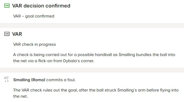 玩球网3月17日讯欧联1/8决赛次回合,罗马vs皇家社会。上半场补时阶段,罗马角球,斯莫林打入一球,但因手球被吹。欧联官网显示,斯莫林进球因手球被吹↓