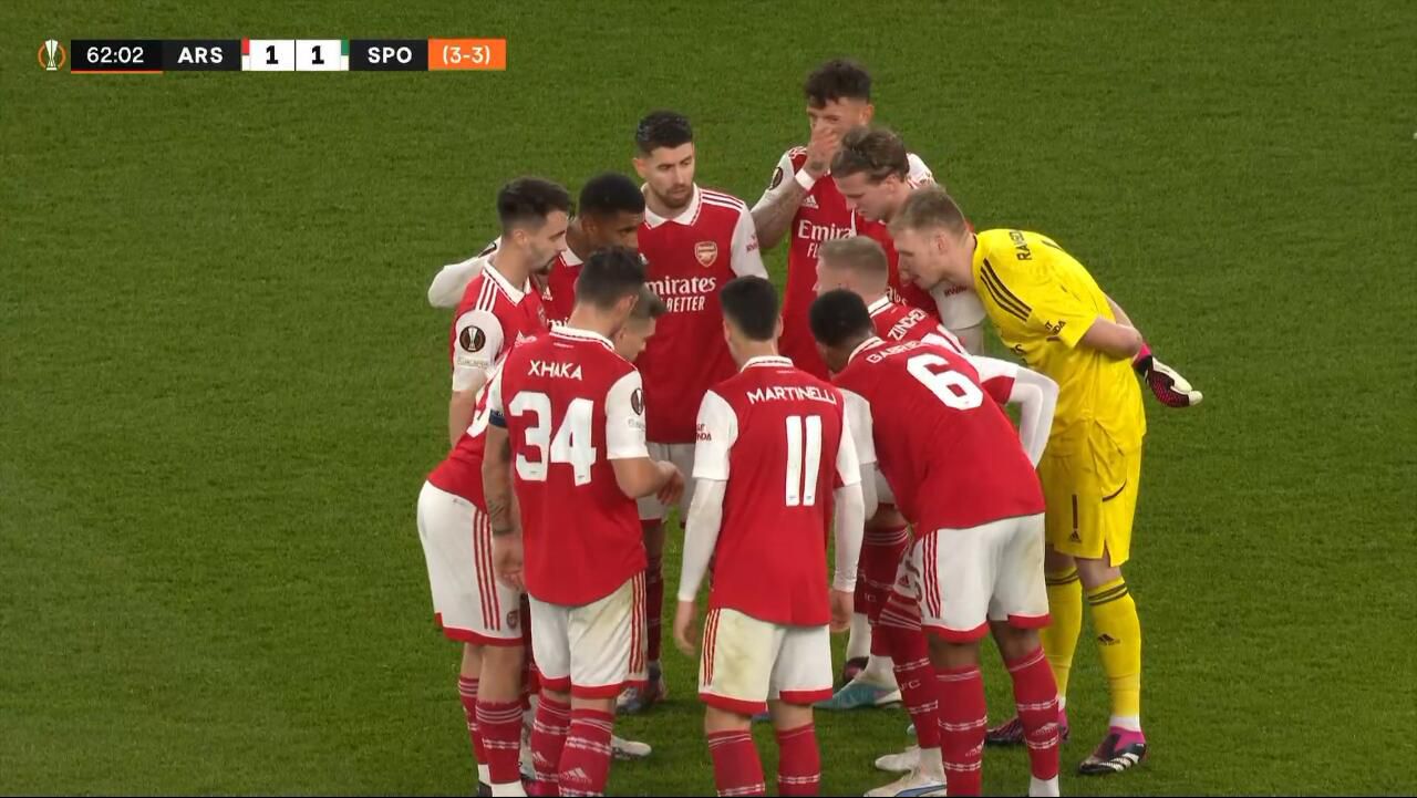 玩球网3月17日讯欧联杯1/8决赛次回合,阿森纳对阵葡萄牙体育。比赛第62分钟,贡萨尔维斯中圈吊射破门。两队总比分3-3战平。被破门后,津琴科组织阿森纳球员们直接围成了一圈开了个小会。