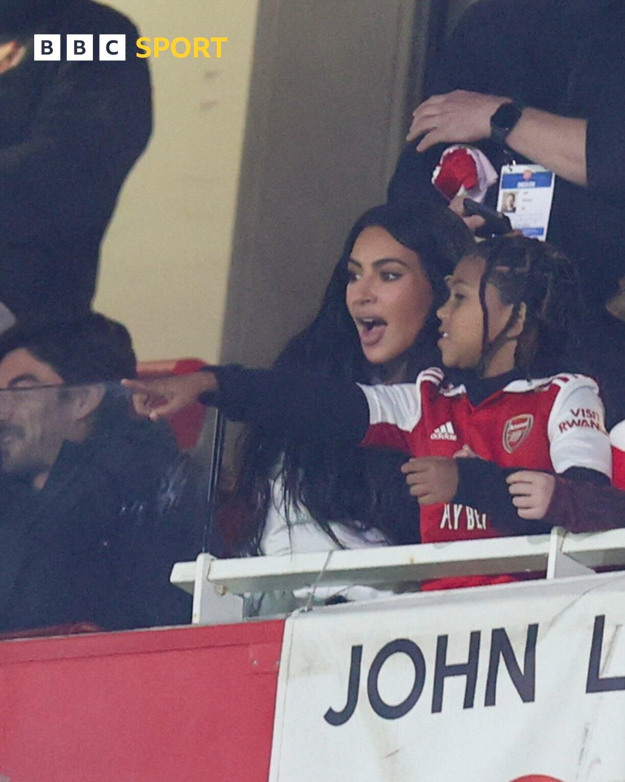 本场比赛金-卡戴珊带着儿子来到了酋长球场,现场观战阿森纳的比赛。她的儿子还穿着阿森纳的球衣。