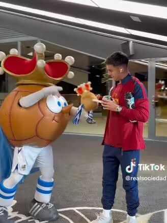 玩球网3月17日讯在今天凌晨进行的欧联杯1/8决赛次回合,罗马客场0-0战平皇家社会,两回合总比分2-0晋级八强。赛后迪巴拉把签名球衣送给了皇家社会的吉祥物Txurdin。迪巴拉在本场比赛代表罗马首发