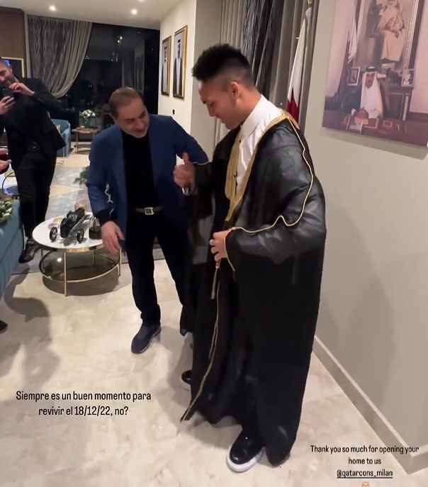 玩球网3月17日讯ESPN报道,劳塔罗在出席活动时穿上了梅西世界杯夺冠后同款的bisht长袍。