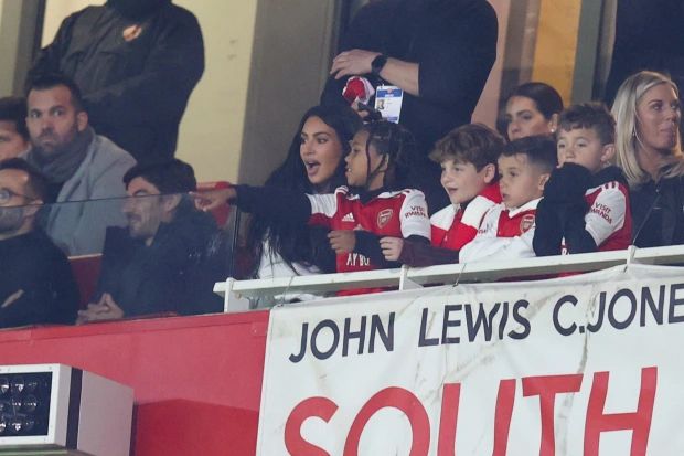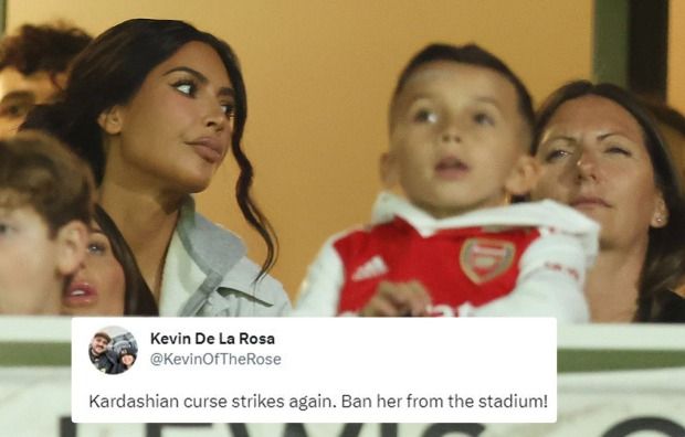 玩球网3月17日讯欧联杯1/8决赛阿森纳点球大战不敌葡体,惨遭淘汰。42岁的金-卡戴珊携爱子现场观战。不过据《太阳报》报道,阿森纳球迷认为被卡戴珊诅咒了。太阳报节选了一些球迷的评论:“告诉她永远别再来