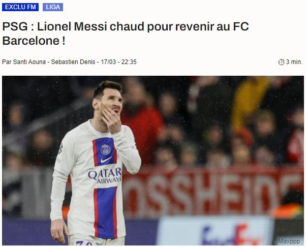 【欧预赛名单】 意大利公布新一期30人名单:基耶萨、托纳利、巴雷拉在列 意大利公布欧预赛对阵英格兰和马耳他的30人名单。 官方:佩德里退出西班牙本期欧预赛名单 官方消息,佩德里退出西班牙本期欧预赛名单。 【梅西父亲PK法媒】 梅西父亲辟谣:续约条件?索要6亿?与加尔蒂不和?全是谣言!❌ 网传梅西对加尔蒂训练内容失望中途退出,GFFN辟谣:他内收肌不适 硬刚梅西父亲辟谣????法媒:梅西的确训练早退,加尔蒂阻止未果 梅西父亲发文,否认了近期关于梅西的几个谣言。法媒Footmercato则跟进爆料。 【其他新闻】 法媒独家:梅西首选返回巴萨,巴萨正在想办法将他签回 法媒footmercato独家报道,梅西首选返回巴萨,巴萨正在想办法将他签回。 罗马诺:梅西续约谈判重点不是钱,他想全面了解巴黎未来计划 罗马诺谈梅西与巴黎续约进展,薪资不是谈判重点。 天空记者:卡塔尔财团对曼联的第二份报价预计接近60亿镑 天空记者消息,卡塔尔财团对曼联的第二份报价预计接近60亿镑。 记者:萨利巴受背伤将接受评估 富安健洋可能因膝伤缺席更久 记者跟进报道阿森纳伤员萨利巴、富安健洋等人的伤情。 442评目前足坛左后卫TOP10:津琴科第一,特奥第三阿方索第五 FourFourTwo评选当今足坛十大左后卫,津琴科居首。 【欧战8强对阵】 欧冠八强:皇马vs切尔西 曼城vs拜仁 国米vs本菲卡 米兰vs拿波里 欧联八强:曼联vs塞维利亚,罗马vs费耶诺德,尤文vs葡萄牙体育 欧会杯1/4决赛:紫百合vs莱万母队,尼斯vs巴塞尔,西汉姆vs根特 |