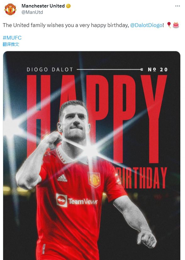 玩球网3月18日讯今天是曼联边卫达洛特的24岁生日,曼联官方为他送上祝福。曼联官方账号在社交媒体上晒出为达洛特制作的生日海报,并写道:“曼联大家庭祝你生日快乐,达洛特!”达洛特2018年从波尔图加盟曼