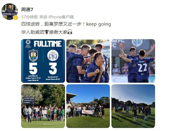 玩球网3月18日讯替补登场帮助奥克兰城逆转惠灵顿奥林匹克之后,周通在社媒发文庆祝了这场胜利。2023年大洋洲冠军联赛资格赛附加赛第二回合,奥克兰城5-3惠灵顿奥林匹克,总比分6-4击败对手晋级大洋洲冠