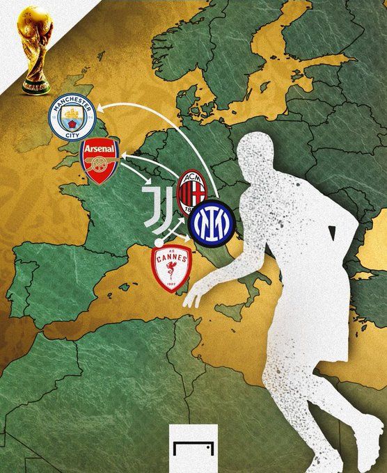 米兰→阿森纳→尤文→国米→曼城????这位球员是谁呢?