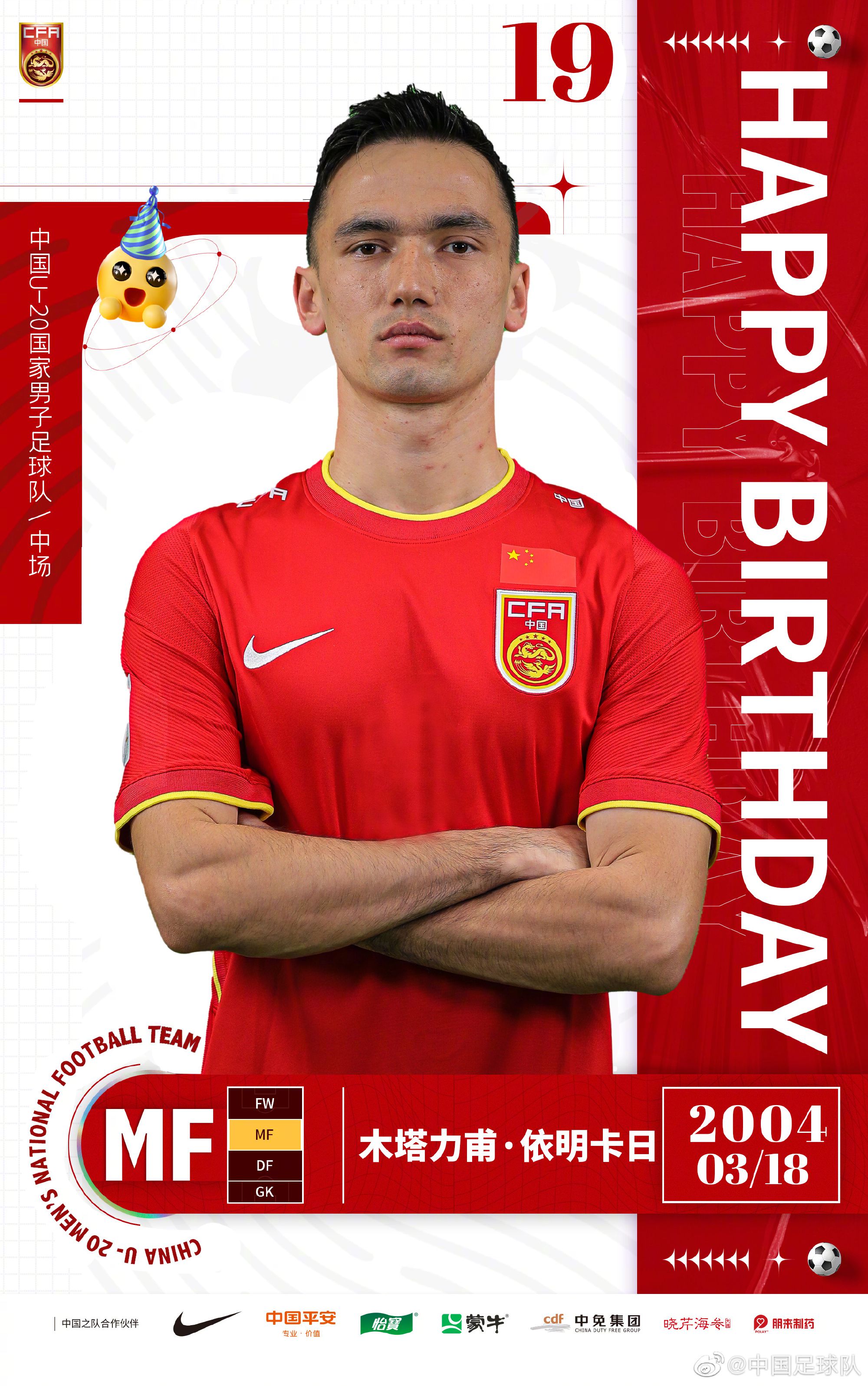 在刚刚过去的U-20亚洲杯上,你发挥出色打入2球,帮助U-20国家队杀入八强。上赛季,你已经在职业赛场站稳脚跟,中超和足协杯中留下了5个精彩进球,期待你在今年的联赛中能够更进一步。祝木塔力甫·依明卡日19岁生日快乐!