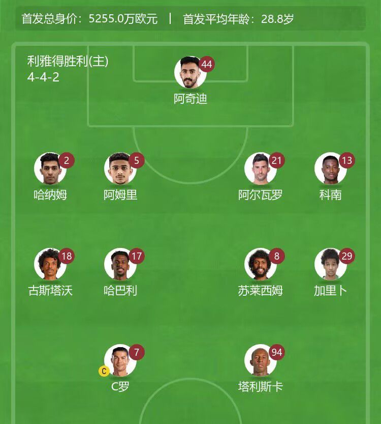 玩球网3月19日讯沙特联第21轮,利雅得胜利主场对阵艾卜哈,赛前首发公布。利雅得胜利首发:44-阿奇迪、2-哈纳姆、5-阿卜杜拉-阿姆里、21-阿尔瓦罗-冈萨雷斯、13-科南、17-哈巴利、8-苏莱西