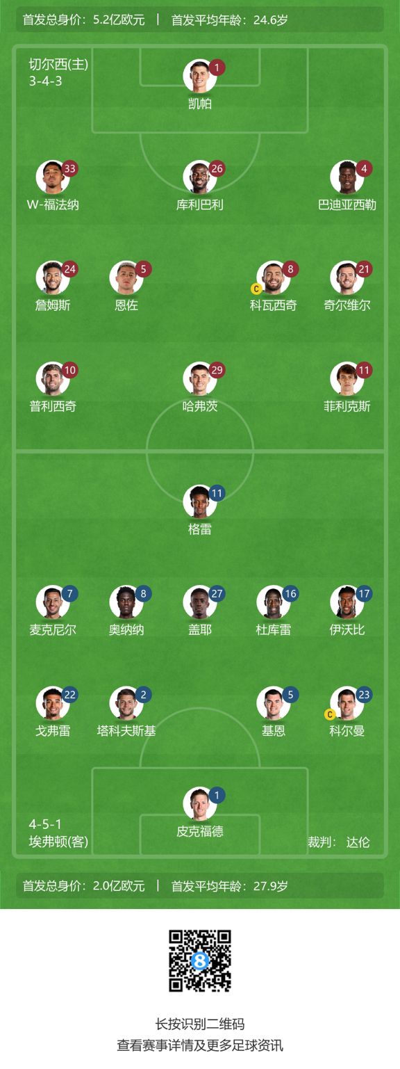 玩球网3月19日讯北京时间01:30分,英超第28轮,切尔西迎战埃弗顿。赛前首发名单公布。切尔西首发:1-凯帕、33-韦斯利-福法纳、26-库利巴利、4-巴迪亚西勒、24-里斯-詹姆斯、5-恩佐-费尔