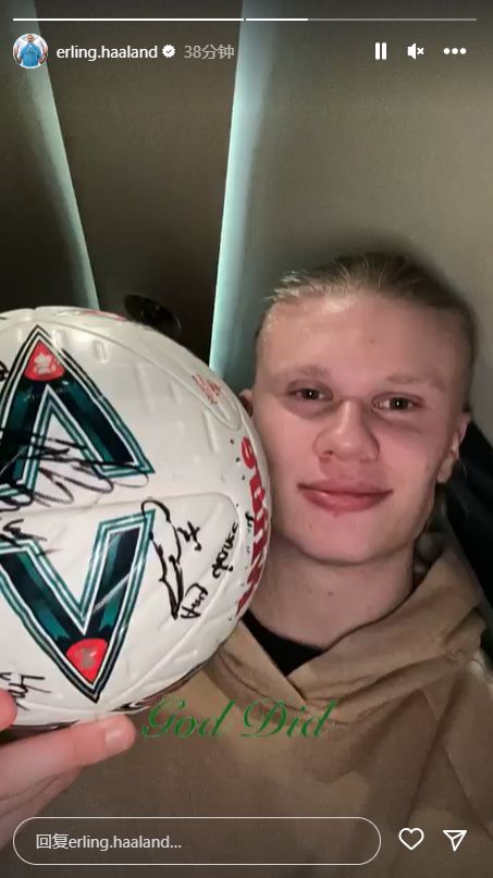 赛后哈兰德更新了个人社媒,晒出了他和比赛用球的合影。