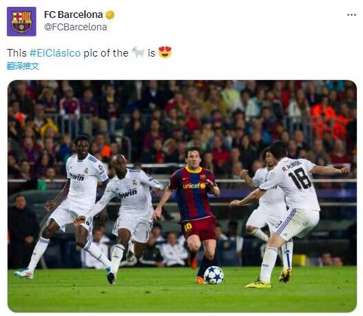 玩球网3月19日讯北京时间明天凌晨,巴萨将在西甲第26轮比赛中主场对阵皇马。巴萨官方账号在社交媒体上晒出梅西效力球队时期参加国家德比的比赛照片,为这场比赛预热,并写道:“这张Goat(史上最佳)的国家