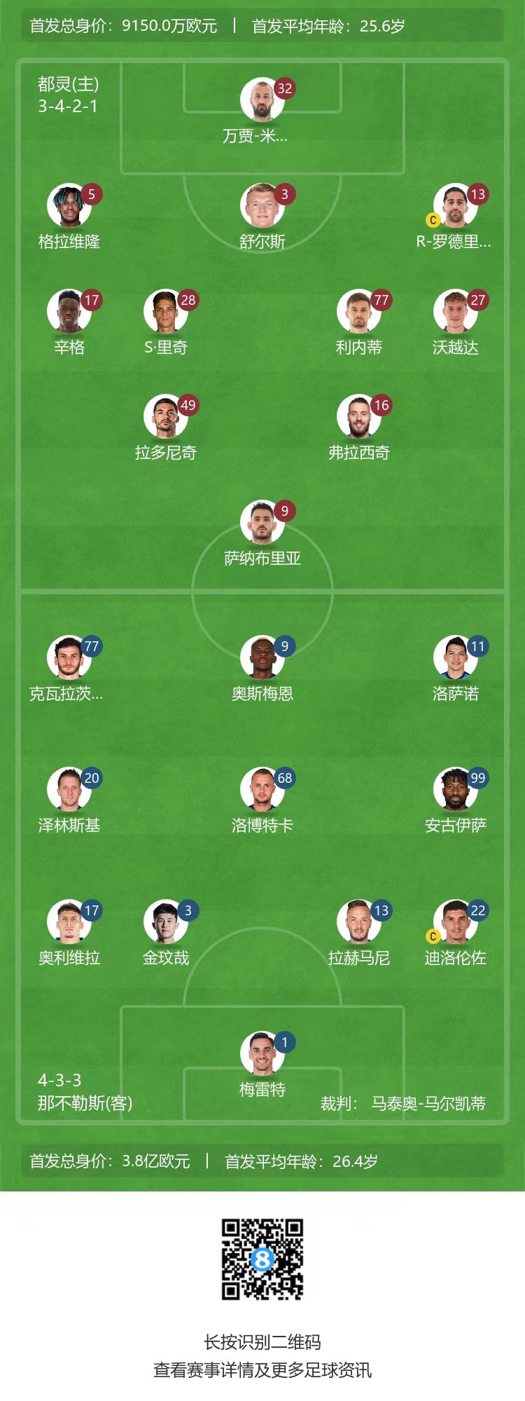 玩球网3月19日讯北京时间03月19日星期日22:00,意甲第27轮,那不勒斯客场挑战都灵。赛前,双方首发名单公布。那不勒斯首发:1-梅雷特、3-金玟哉、13-拉马尼、17-奥利维拉、22-迪洛伦佐、