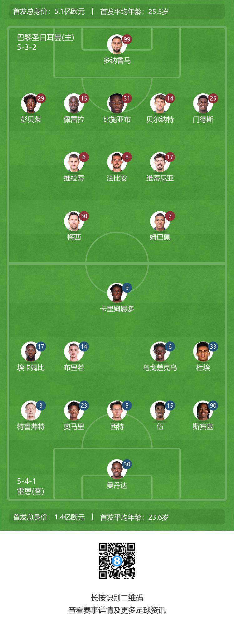 玩球网3月19日讯法甲第28轮,巴黎主场对阵雷恩。赛前,官方公布了首发名单。巴黎首发:99-多纳鲁马、29-彭贝莱、31-比施亚布、14-贝尔纳特、25-努诺-门德斯、6-维拉蒂、8-法比安-鲁伊斯、