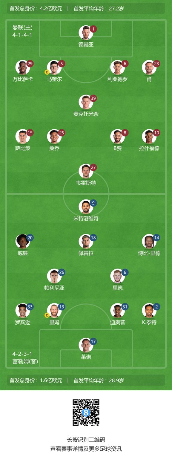 玩球网3月19日讯北京时间00:30,足总杯1/4决赛,曼联主场迎战富勒姆。赛前首发名单公布。曼联首发:1-德赫亚、29-万-比萨卡、5-马奎尔、6-利桑德罗-马丁内斯、23-卢克-肖、15-萨比策、