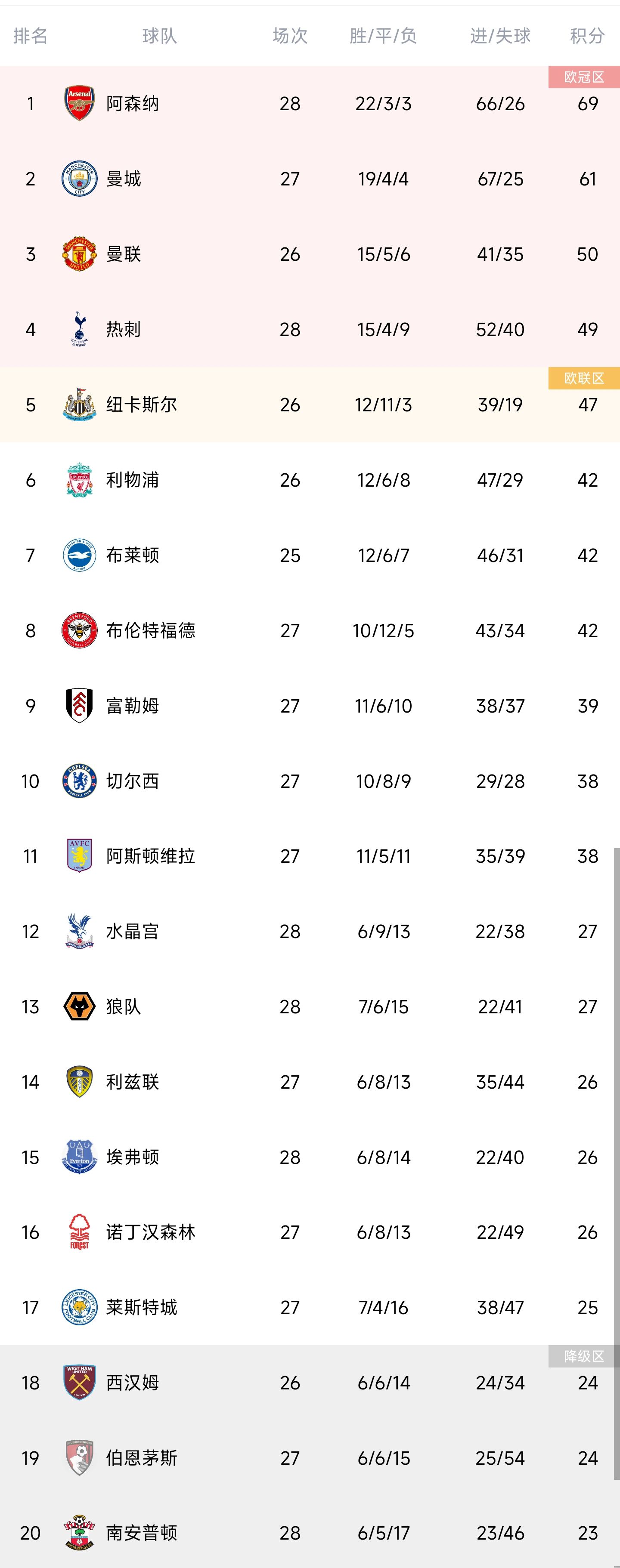玩球网3月19日讯英超第28轮,阿森纳4-1战胜水晶宫。英超积分榜上,阿森纳多赛一场领先曼城8分,而曼城则因为足总杯,本轮对阵西汉姆联的比赛延期。接下来将进入国家队比赛日,下一轮英超将在4月1日重启。
