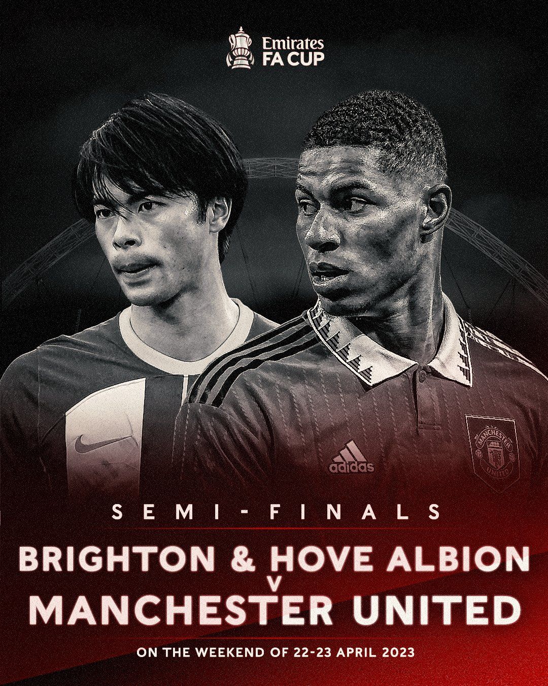 玩球网3月20日讯足总杯最后一场1/4决赛战罢,曼联击败富勒姆晋级,四强全部出炉。半决赛对阵如下:曼城vs谢菲尔德联布莱顿vs曼联