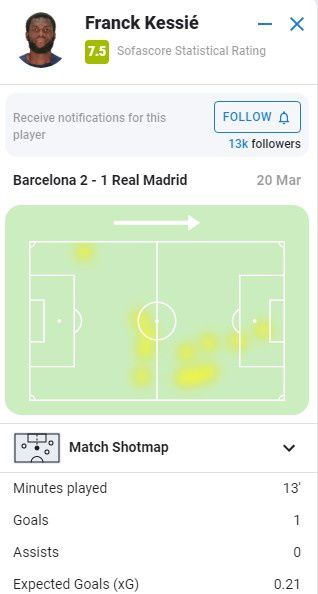 玩球网3月20日讯今天凌晨,巴萨在西甲联赛中2-1击败皇马,以下为凯西本场比赛的数据。本场比赛,凯西替补登场踢了13分钟,并打进绝杀进球,这也是他在西甲的首个进球。此役,凯西有11次触球,8次传球6次