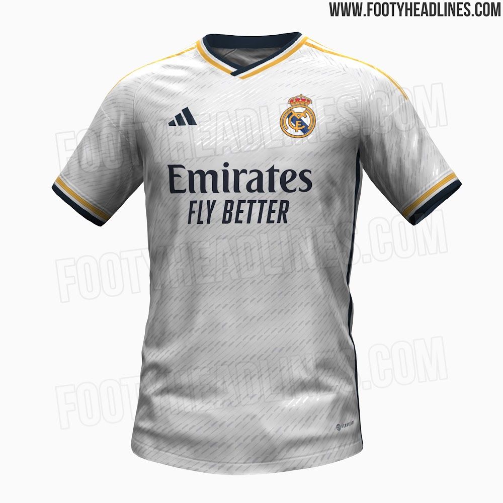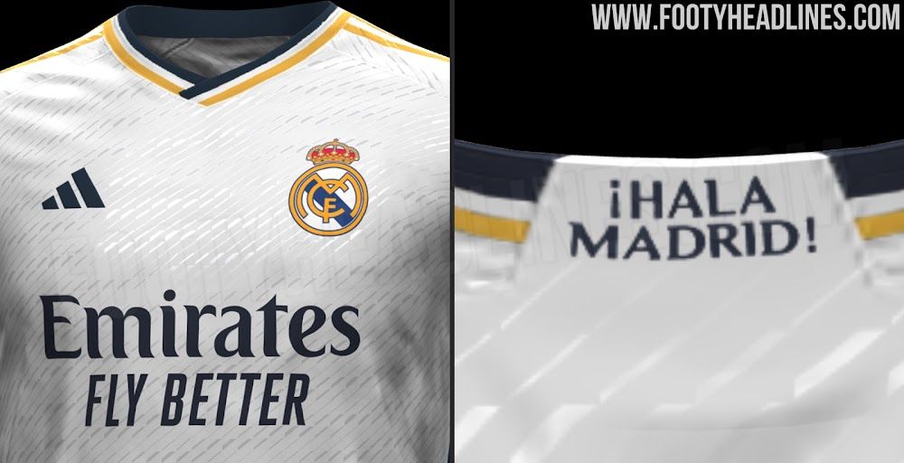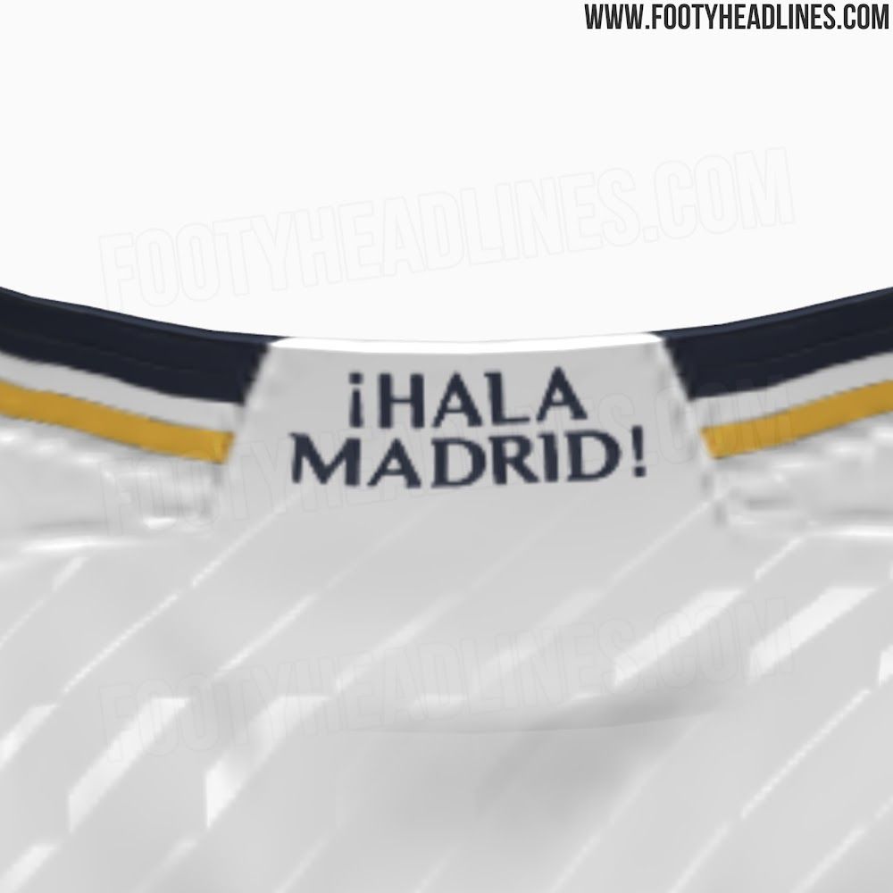 玩球网3月20日讯足球装备网站FootyHeadlines泄露了皇马2023-24赛季球衣的最新细节,细节图中可以看到,皇马主场球衣首次在衣领处印上了俱乐部口号“¡HalaMadrid!”配色方面,球