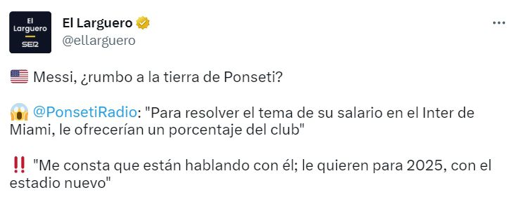 玩球网3月21日讯对于梅西可能加盟迈阿密国际一事,西班牙记者Ponseti更新了相关信息。西班牙记者Ponseti:为了解决他在迈阿密国际的薪水问题,他们会给梅西一部分的俱乐部股份。我知道双方正在对话