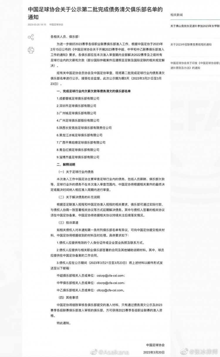 玩球网3月21日讯据律师张冰报道,对于足协公示的第二批完成债务清欠俱乐部名单,很多被欠薪的中外球员都深感震惊。张冰律师表示:“多位被欠薪的中外球员及其经纪人联系我,表示震惊、愤怒或者无语。建议大家先按