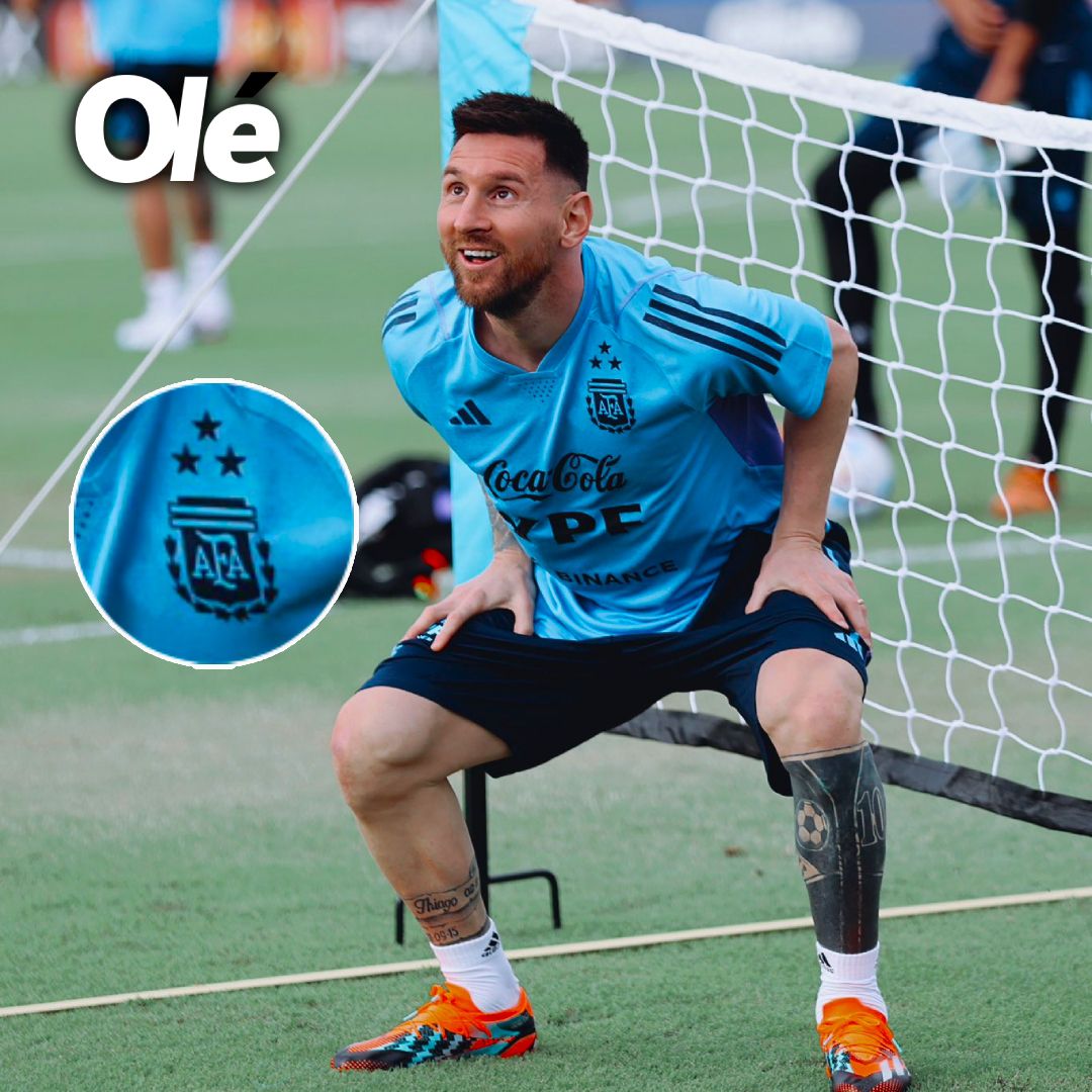 世界冠军新球衣!梅西身着阿根廷三星球衣开心训练