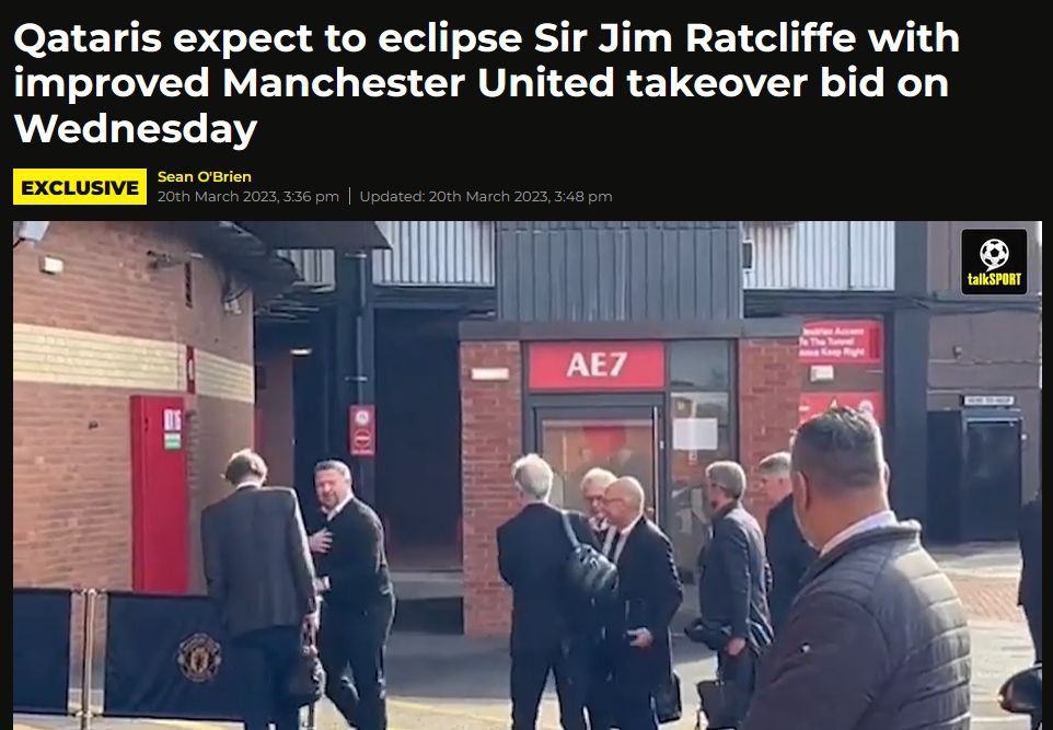 玩球网3月21日讯英国媒体talkSport就曼联收购案更新了相关进展。英媒表示,以阿勒萨尼为首的卡塔尔财团对曼联的首次报价金额为45亿镑,而曼联现任老板格雷泽为球队标价60亿镑。卡塔尔财团方面上周四