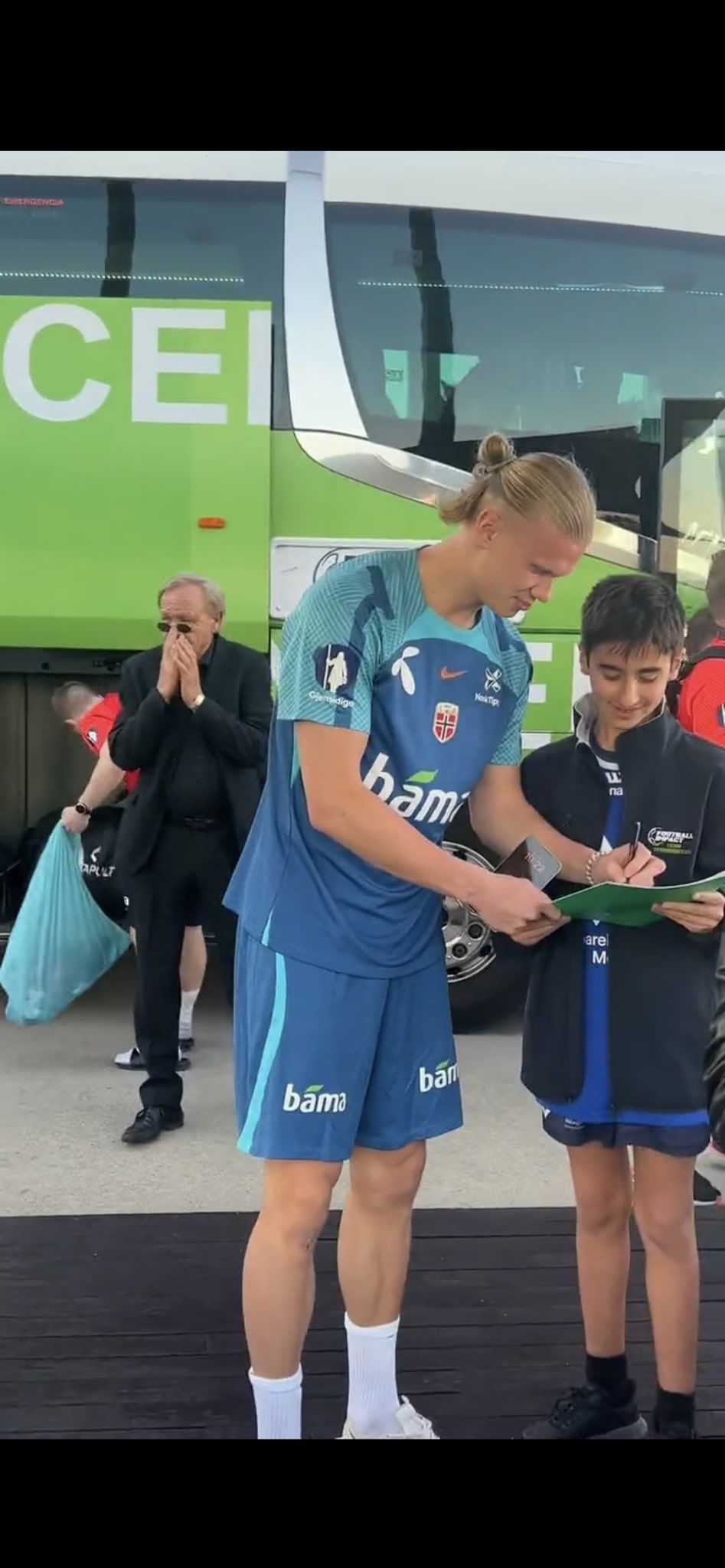 玩球网3月21日讯国际比赛日期间,哈兰德前往挪威国家队报到,期间还为小球迷签名。