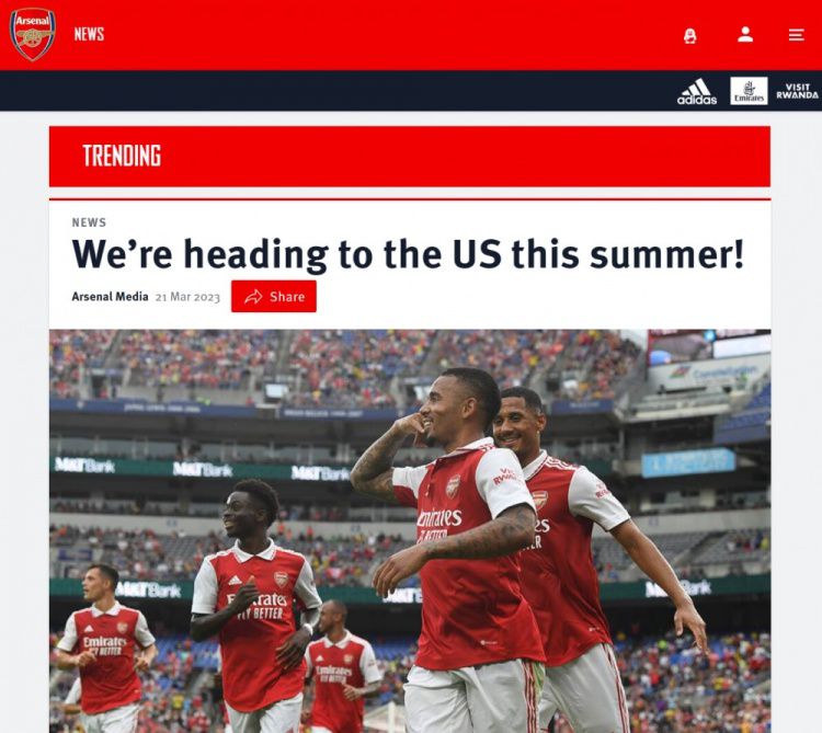 玩球网3月21日讯阿森纳官方宣布,今夏将进行美国行,并公布了具体日期。阿森纳将于当地时间7月19日,在华盛顿特区的奥迪球场对阵由鲁尼执教的MLS全明星队。体育总监埃杜说:“很高兴我们将在7月对阵MLS