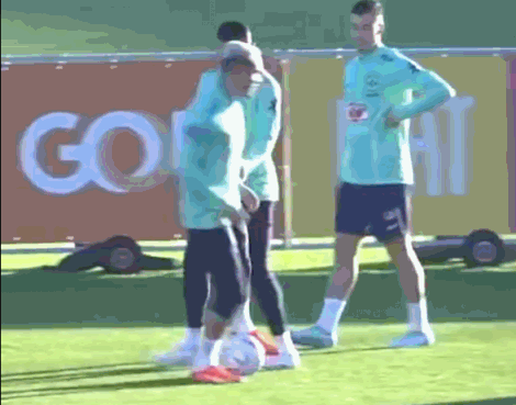 玩球网3月21日讯 今日巴西国家队训练,安东尼再次表演了自己的绝技720度转圈。