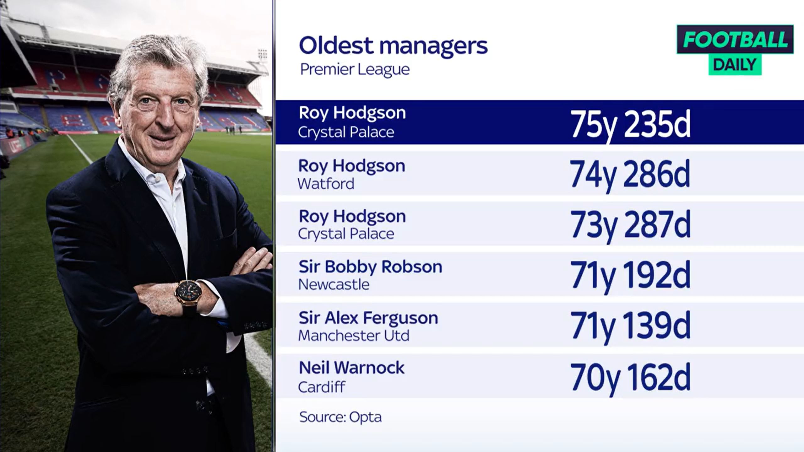 玩球网3月21日讯水晶宫俱乐部今天官方宣布,老帅霍奇森回归执教球队,霍奇森也以75岁235天的年龄再次打破自己此前保持的英超最年长主帅纪录。英超最年长主帅纪录↓(时间倒序)霍奇森(水晶宫):75岁23