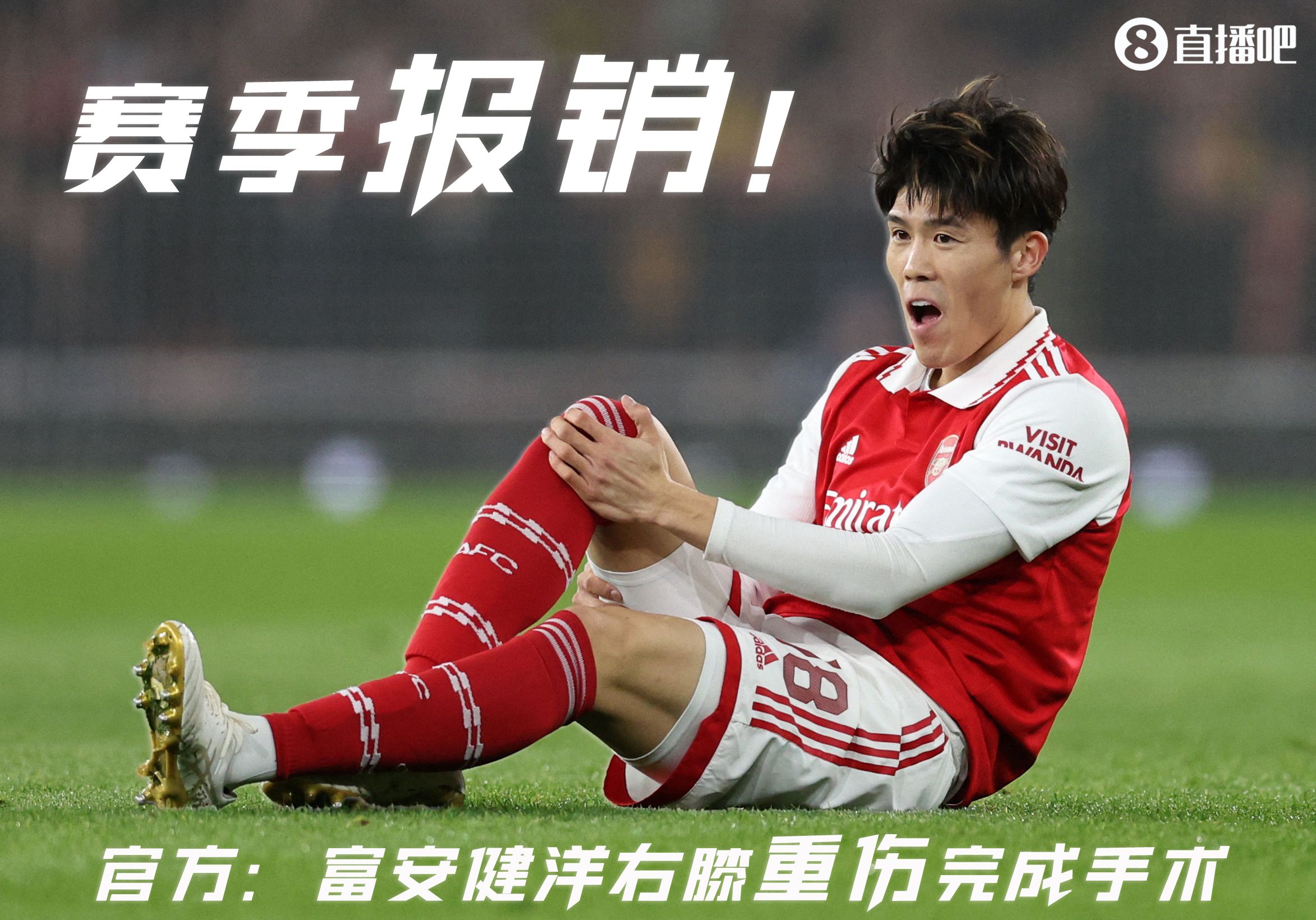 玩球网3月22日讯阿森纳官方消息,富安健洋右膝严重受伤,赛季报销。球员已经完成了手术。欧联杯1/8决赛次回合,阿森纳vs葡体第7分钟,富安健洋受伤,之后被换下。富安健洋现年24岁,本赛季代表阿森纳各赛