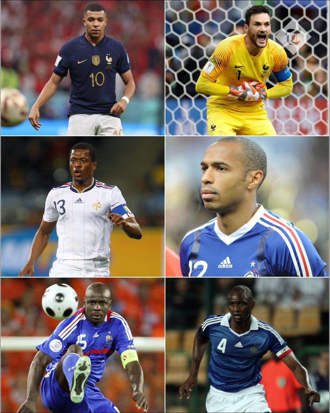 过去6任(正式)法国队长:姆巴佩、洛里、埃弗拉、亨利、图拉姆、维埃拉