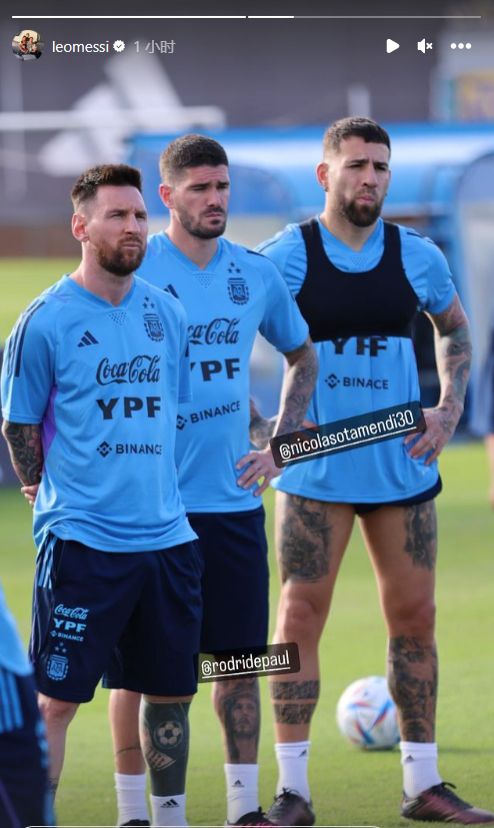 玩球网3月23日讯今日,梅西在社媒上晒出了最新训练照。梅西双手背后,德保罗、奥塔门迪叉腰。明日8:00,友谊赛阿根廷将对阵巴拿马。