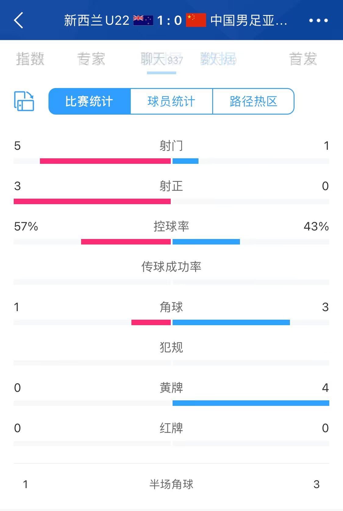 新西兰这支U23其实派出的是22岁以下球员,国足亚运队派出的则是24岁以下球员,但是中国队场面并不占据优势,半场0射正并且领到4张黄牌。