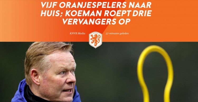 玩球网3月23日讯荷兰国家队官方消息,由于感染病毒,德里赫特、加克波、博特曼、维尔曼(荷甲埃因霍温中场)和维布鲁亨(比甲安德莱赫特守门员)5人离开了国家队训练基地。主帅科曼补招了赫拉芬贝赫、德弗里和斯