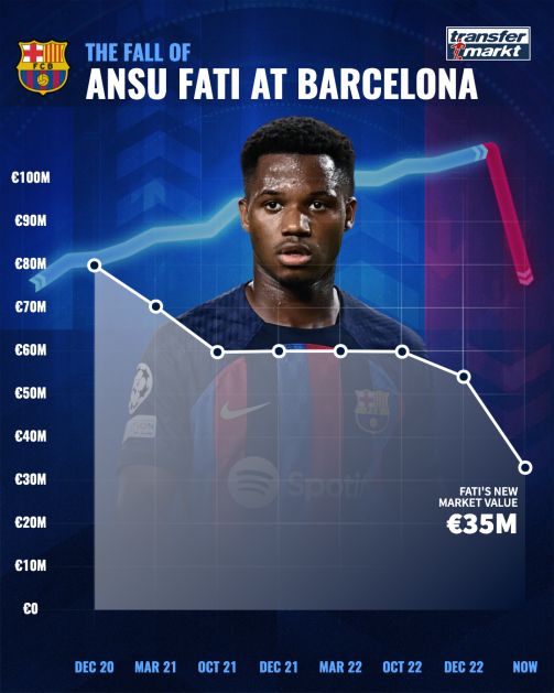 玩球网3月23日讯德转更新西甲球员身价,对比11月7日的上一次更新,20岁的巴萨前锋法蒂的身价暴跌1500万,从5000万跌至3500万。法蒂最高身价曾达到过8000万欧元。2020年10月和次年1月