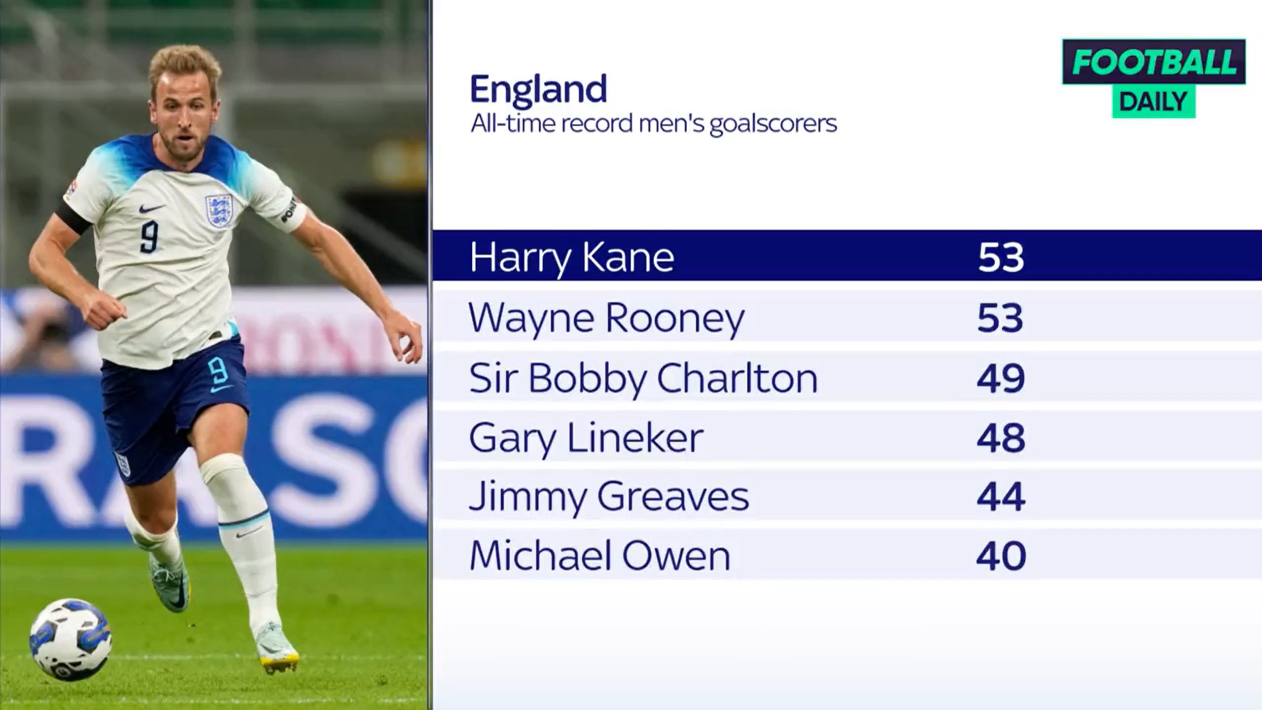 玩球网3月23日讯明天凌晨3点45分,欧洲杯预选赛,英格兰将在客场对阵意大利。目前,凯恩在英格兰队史射手榜上与鲁尼均是打进53球,并列第一。今晚的比赛如能取得进球,他将打破英格兰队史进球纪录,独享射手