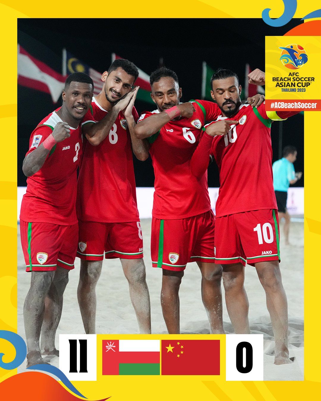玩球网3月23日讯2023沙滩足球亚洲杯1/4决赛,中国沙滩足球队0-11不敌阿曼,无缘四强。本届赛事,中国队在小组赛中击败黎巴嫩、印度尼西亚,输给卫冕冠军日本队,获得小组第二。其他几场比赛中,东道主