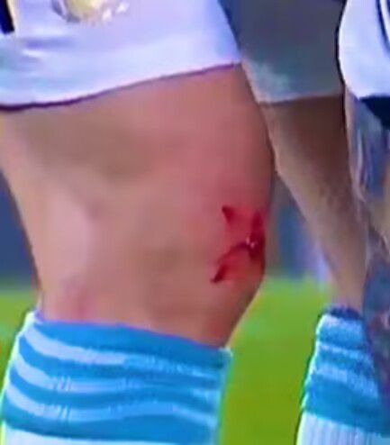 玩球网3月24日讯友谊赛,阿根廷vs巴拿马。比赛第16分钟,梅西带球被巴拿马两名球员放铲。镜头显示,梅西的膝盖流血了。