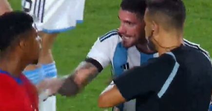 玩球网3月24日讯友谊赛,世界冠军阿根廷对阵巴拿马。比赛第15分钟,梅西带球突破遭巴拿马多人放铲,德保罗第一个拿球冲上和对方理论。