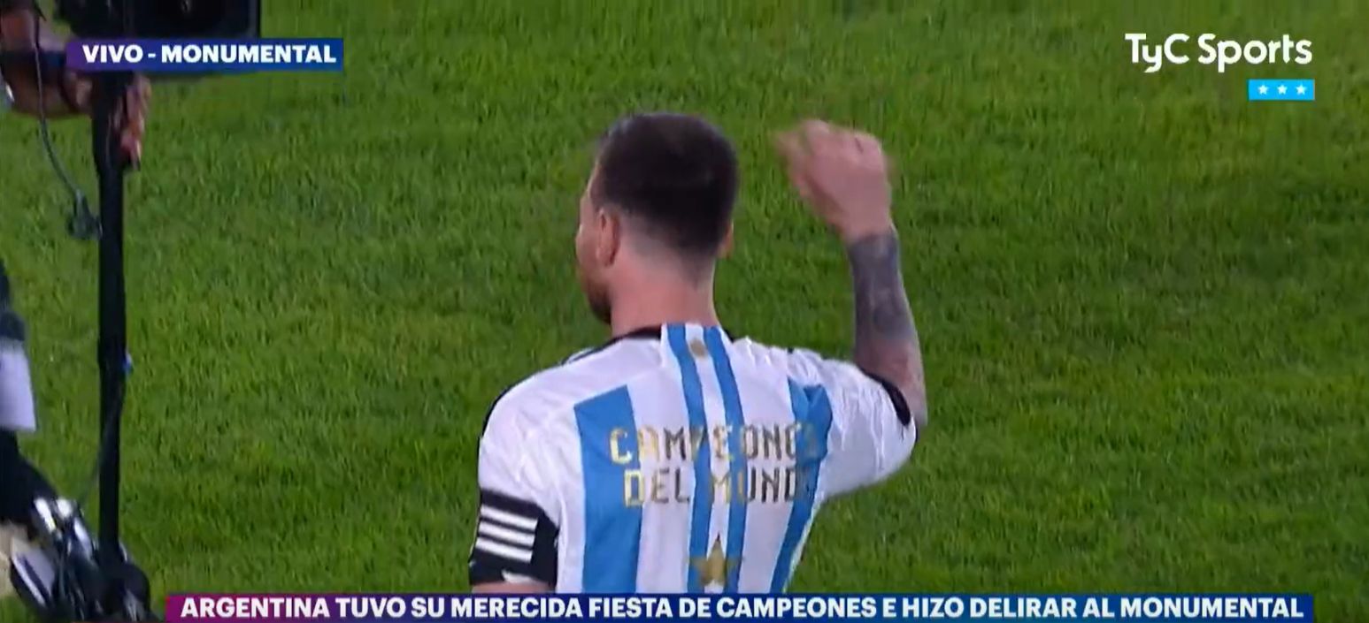 玩球网3月24日讯 友谊赛阿根廷vs巴拿马,赛后阿根廷举行了世界杯冠军庆祝活动,劳塔罗带头高唱,全队一起兴奋起舞。 劳塔罗唱道:“一分钟的默哀......为死去的法国。”随后还提到了巴西。 随后,队员起哄让梅西一起跳舞,梅西拒绝了邀请。 (WinksK4) |